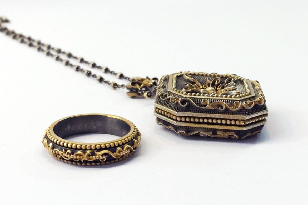 Dönemin zanaatkarları gibi, zincirinden cevherin dövülerek şekil verilmesine, el oymacılığından asla bilinemeyen gizli kilit sistemine kadar özenli bir çalışmanın ürünüdür. Tamamı tezgah – el ürünüdür. Ürün SUMERIAN markasının yaratıcısı ve kurucu olan Elçin Sümer’in tezgahından çıkmıştır.